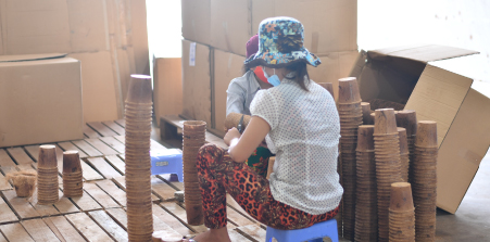 Chuẩn bị được ươm xuống đất, ưu điểm của sản phẩm là bạn không cần lấy cây ra khỏi bầu, sẽ tự phân hủy trong đất và không ảnh hưởng đến môi trường.